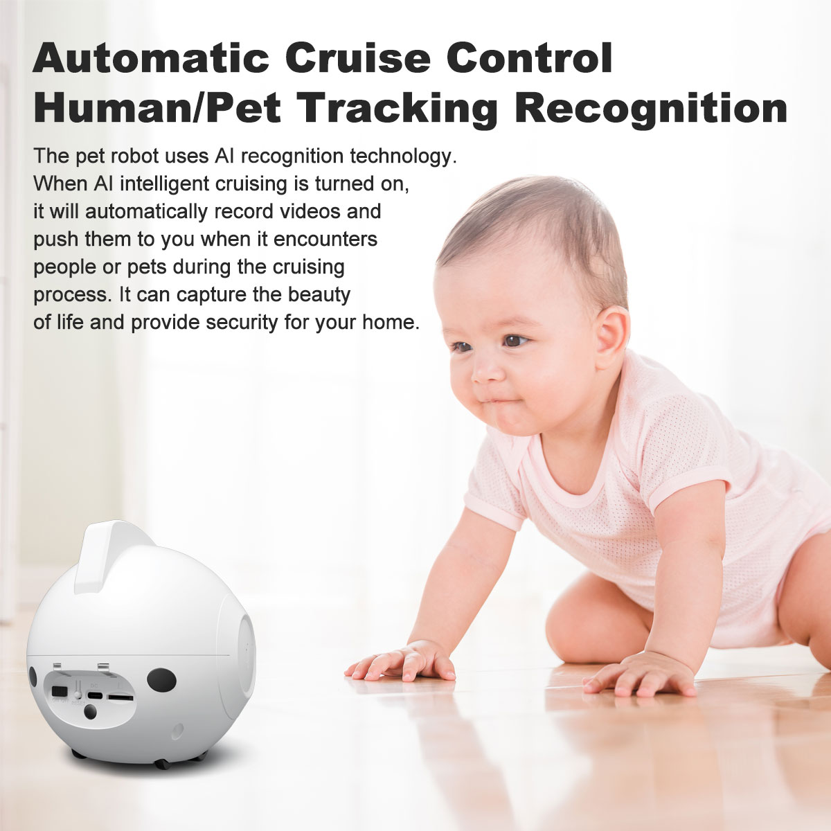 Beyond play and care, the AI Smart Pet Robot with Camera acts as a smart home guardian. It features PIR motion detection that sends instant alerts to your phone when activity is detected, plus customizable privacy zones to block sensitive areas from the camera view. It supports up to 128GB TF card storage for recording precious pet moments, with remote playback and sharing via your phone—all while prioritizing your privacy and security.
