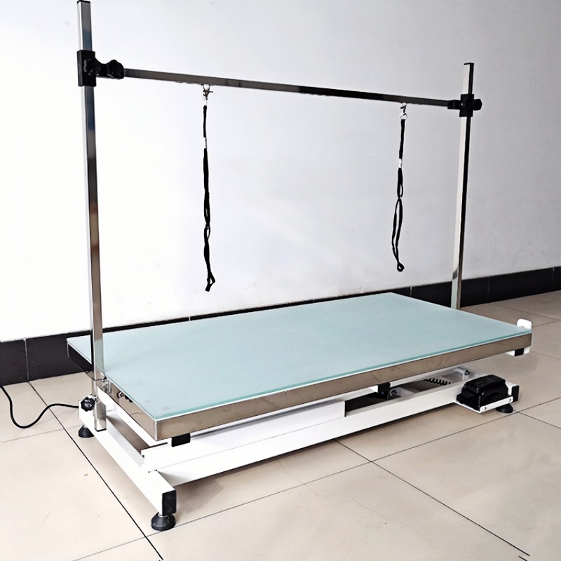 The electric pet grooming table offers customizable options, including custom stainless steel bases. This allows groomers to tailor the table to their specific grooming setup, providing versatility and flexibility. The electric dog grooming table can be adapted to fit any salon or home grooming environment.
