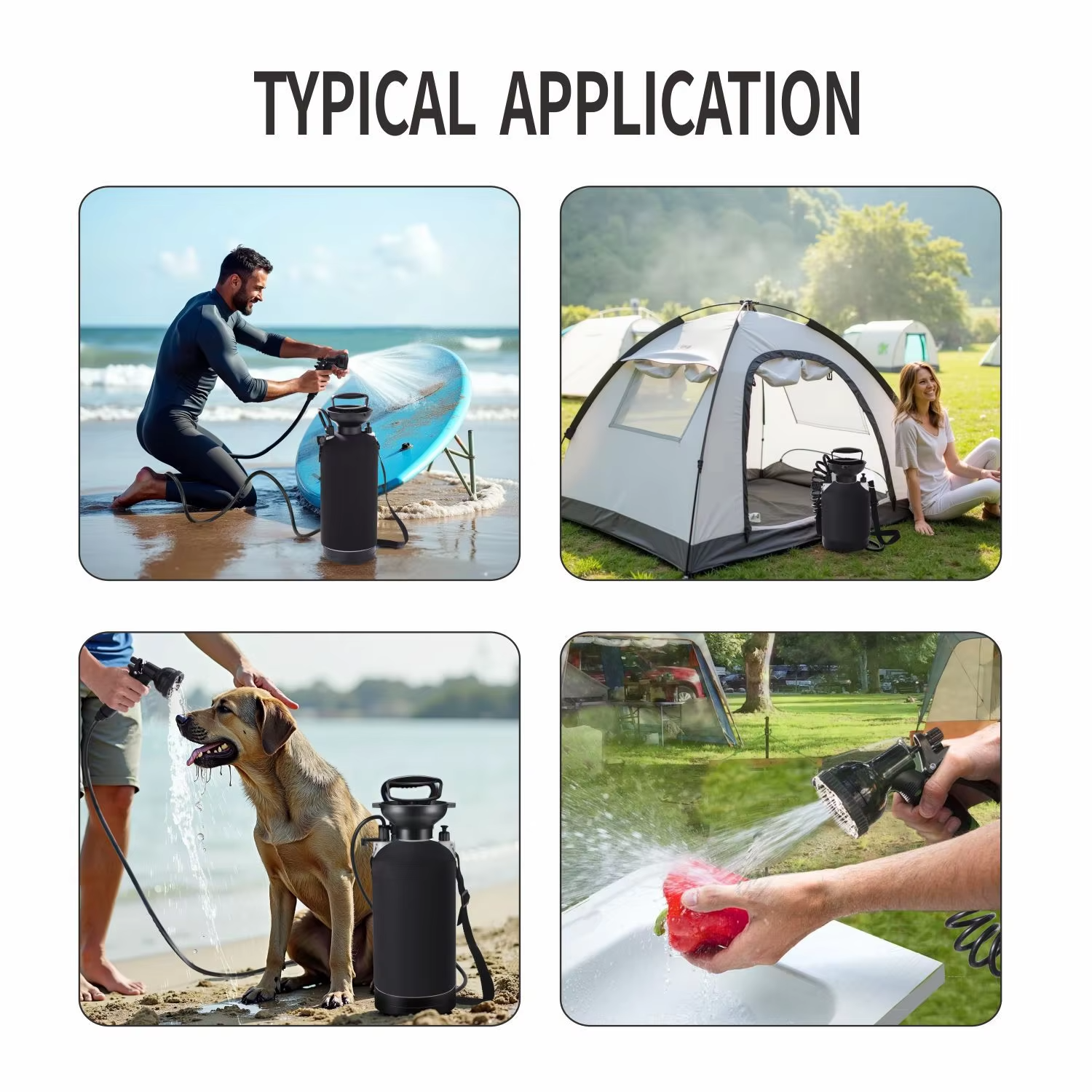 Versatile Use Beyond Pet CareThis isn’t just a Dog Washer—it’s a multi-purpose outdoor essential. Use it to rinse off surfboards, clean camping gear, wash fresh produce, or even cool down on hot days. It’s the ultimate all-in-one rinse kit for any outdoor enthusiast.