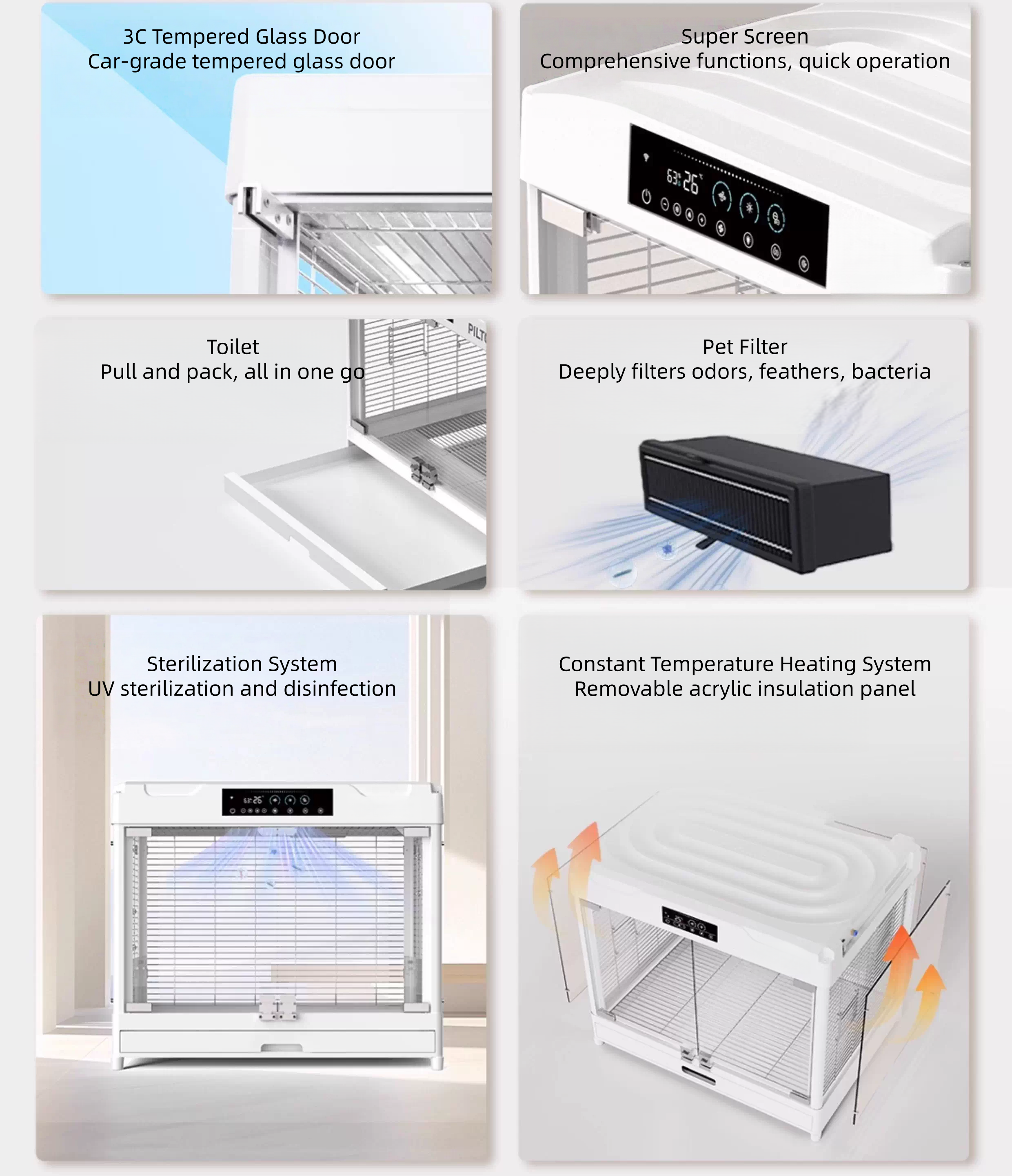 - Bird Filter: The Smart Bird Cabin features a specialized bird filter that deeply cleans and purifies the air, removing odors, feathers, and pathogens, which is essential for a clean home environment.
