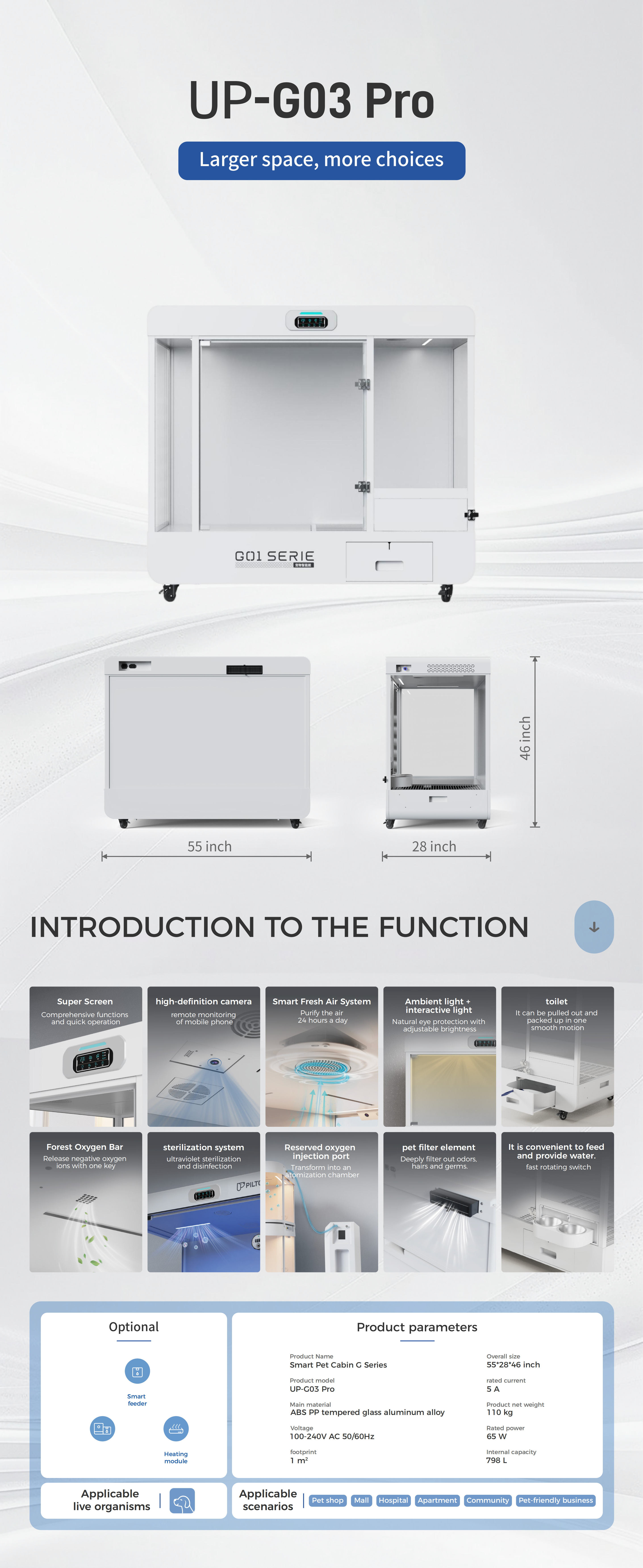 - Pet Filter: The Smart Pet Cabin for Breeding features a specialized pet filter that deeply cleans and purifies the air, removing odors, hair, and pathogens, which is essential for maintaining a sanitary breeding environment.