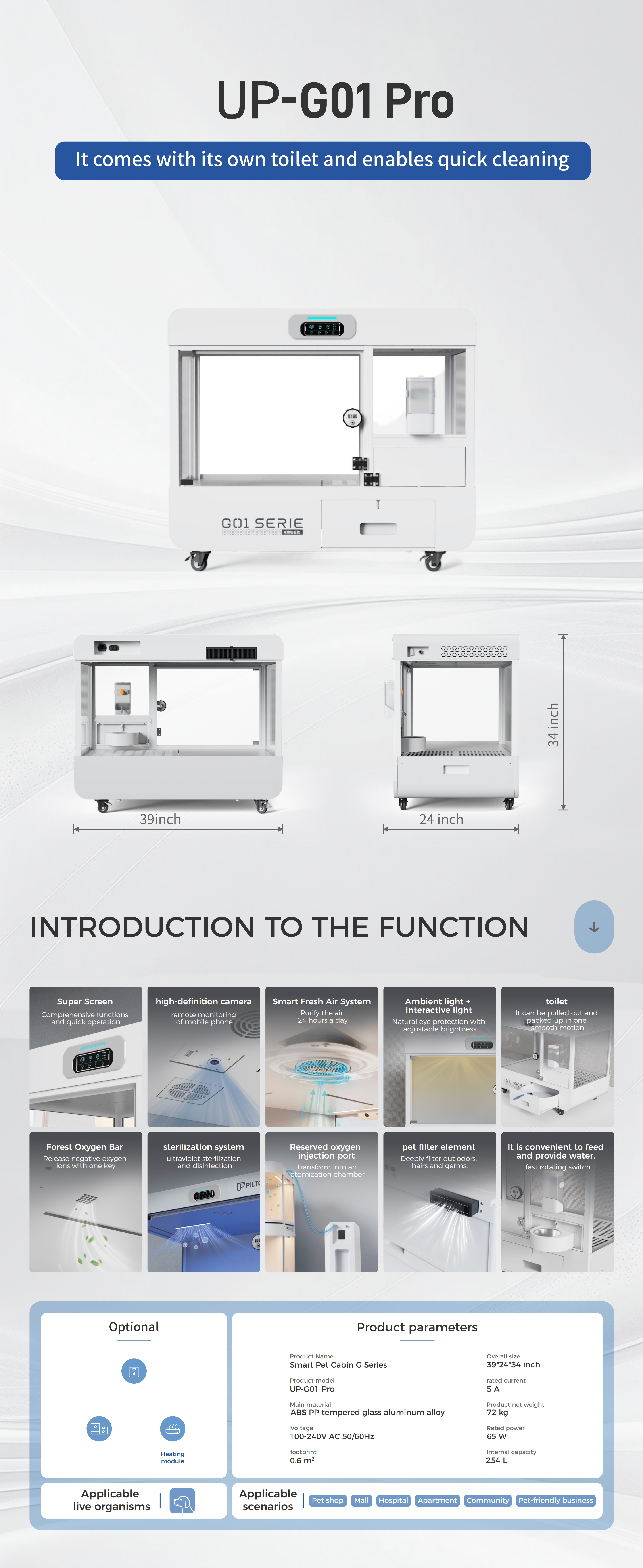 - Sterilization System: Utilizing UV technology, the Smart Pet Cabin offers a sterilization system that effectively eliminates bacteria, ensuring a clean and healthy environment for breeding.