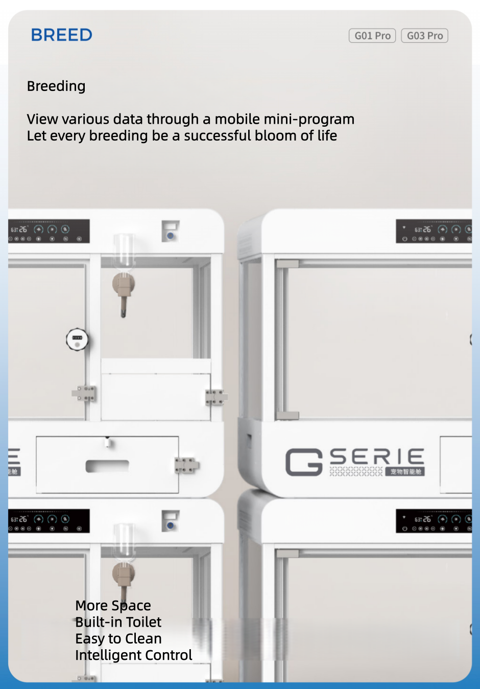 The Smart Pet Cabin for Breeding is not just a pet cage; it's a comprehensive breeding solution that enhances the lives of breeding pets while providing a visually appealing and functional space for businesses and homes alike. Whether you're a pet store owner, a veterinarian, or a pet apartment manager, this Smart pet cage is designed to meet your needs and exceed your expectations in breeding management.