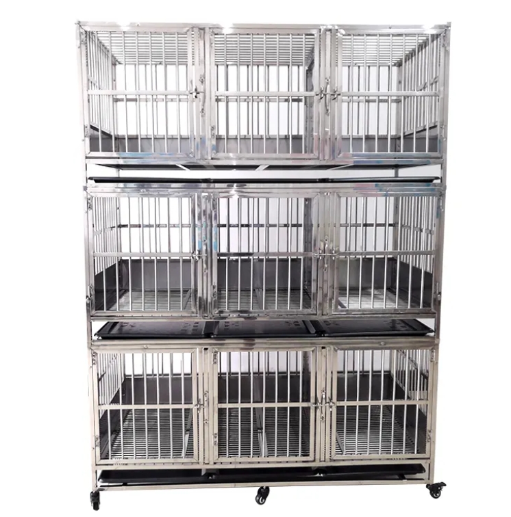 The Stainless Steel Dog Cage is designed with aesthetics in mind and is available in customizable sizes and multi-tier configurations, catering to various boarding and breeding needs.